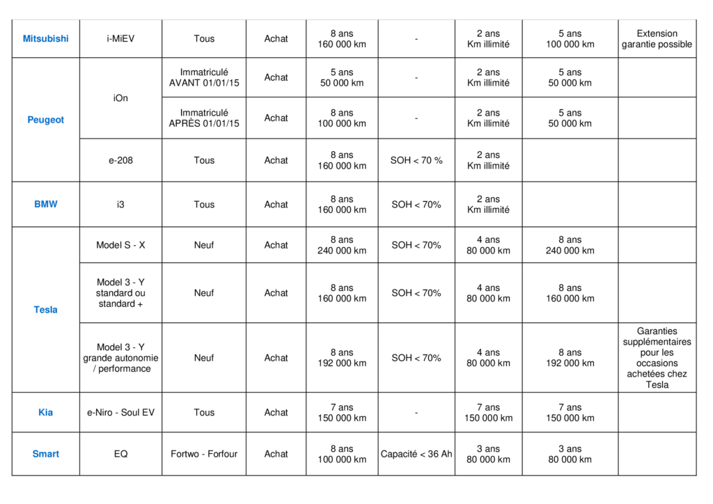 Une garantie dédiée à la batterie, mais attention aux seuils